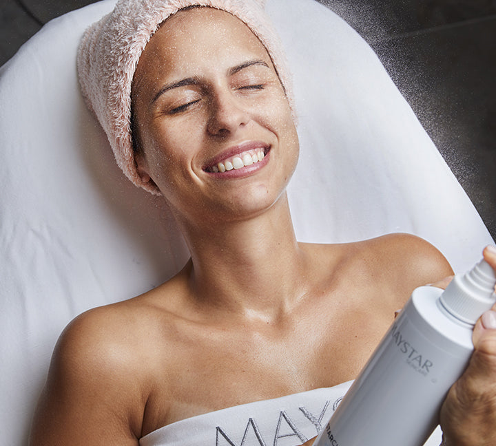 Hold container a few centimetres from face and neck. Spritz treatment area three times. After application, gently press treated skin with fingertips to maximize absorption.