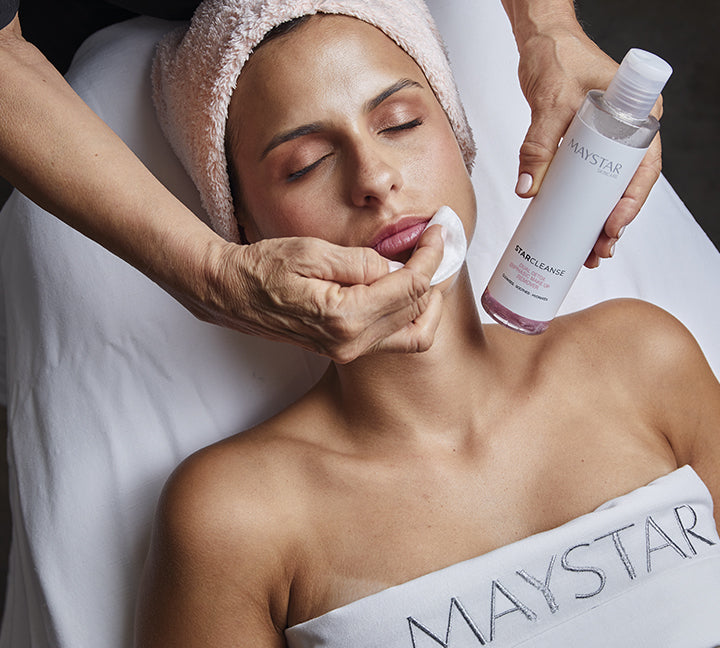 Agitar bien. Aplicar sobre un algodón y limpiar suavemente el contorno de ojos y labios.